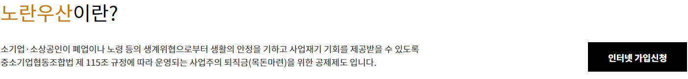 소기업·소상공인이 폐업이나 노령 등의 생계 위협으로부터 생활의 안정을 기하고 사업 재기 기회를 제공받을 수 있도록 중소기업 협동조합법 제115조 규정에 따라 운영되는 사업주의 퇴직금(목돈마련)을 위한 공제 제도입니다.