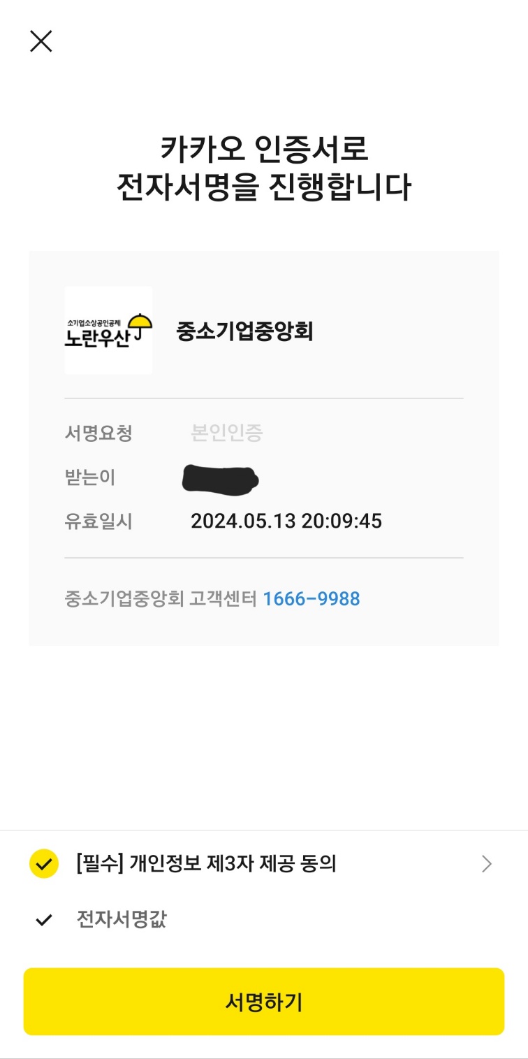 저는 카카오인증으로 노란우산공제 가입을 했습니다. 서로가 편한 앱이 있다면 그곳에서 진행하시면 될 것 같습니다.