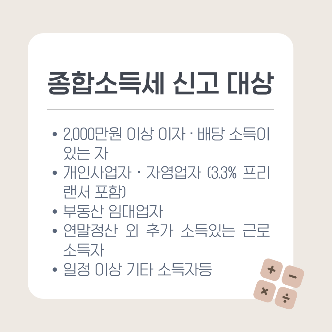 종합소득세 신고 대상에 관해서 알아봅시다.