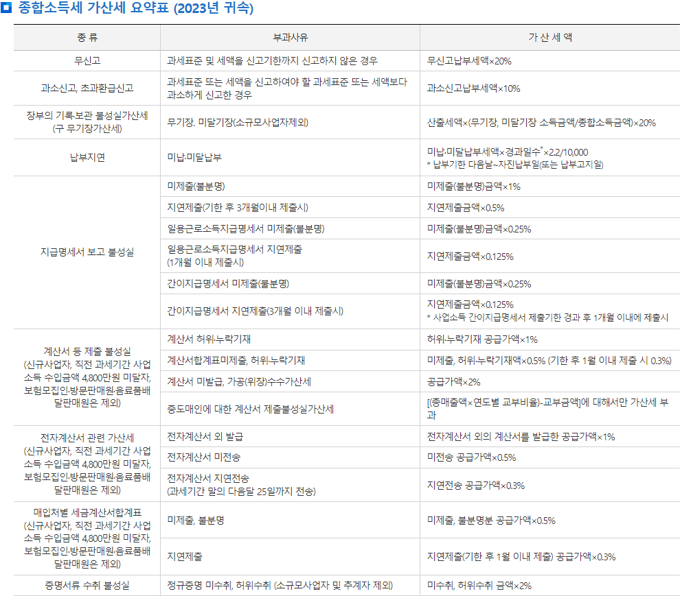 위의 내용들은 모두 국세청 홈페이지에 국세 신고안내 < 개인신고 안내 < 종합소득세 < 기본정보에 모두 나와 있는 내용입니다. 자세한 정보를 원하시면 국세청에 들어가셔서 찾아보셔도 좋습니다.