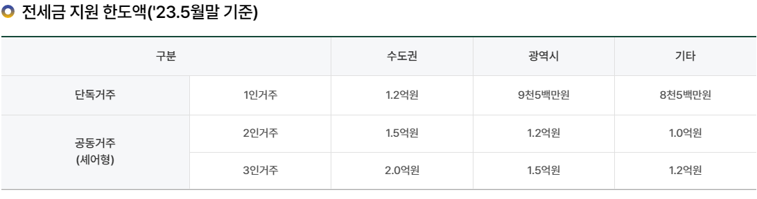 지원 대상 : 18~39세 이하 청년, 대학생 등 무주택자, 중위 소득 150%이하(1인 가구 170%)